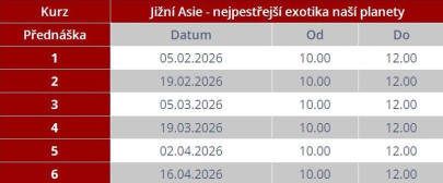 35. kurz s názvem "Jižní Asie - nejpestřejší